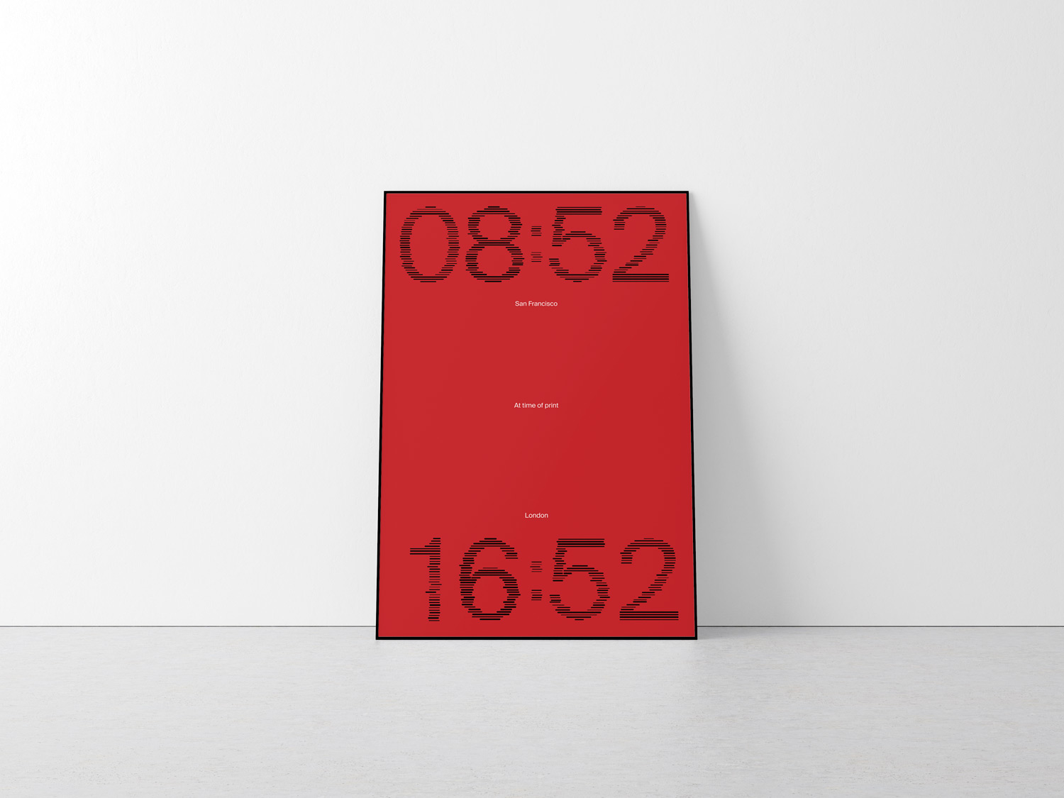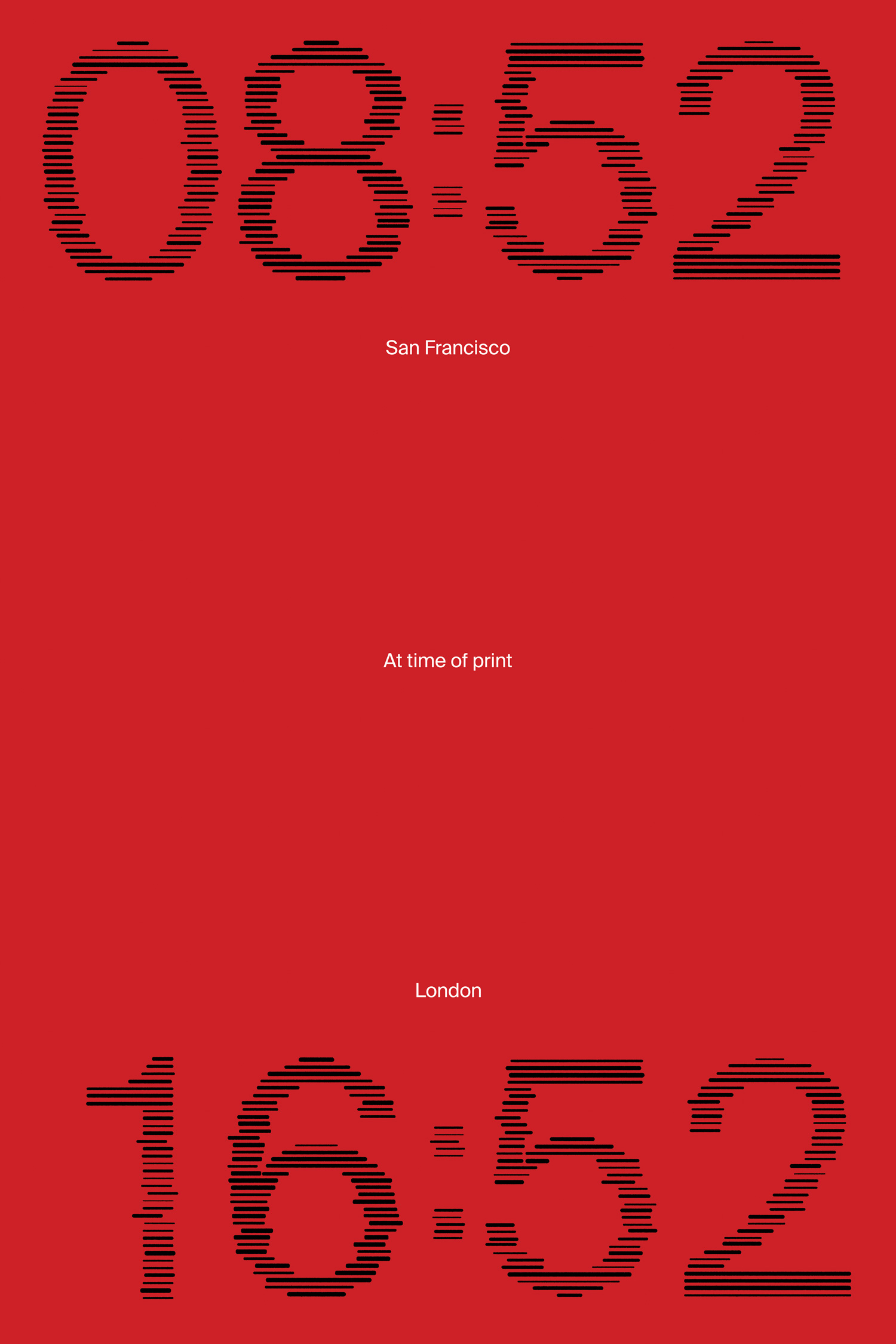 We tried to capture the unity between the London and San Francisco design communities by featuring the precise moment each poster was printed in both time zones. Poster shown is part of a series.