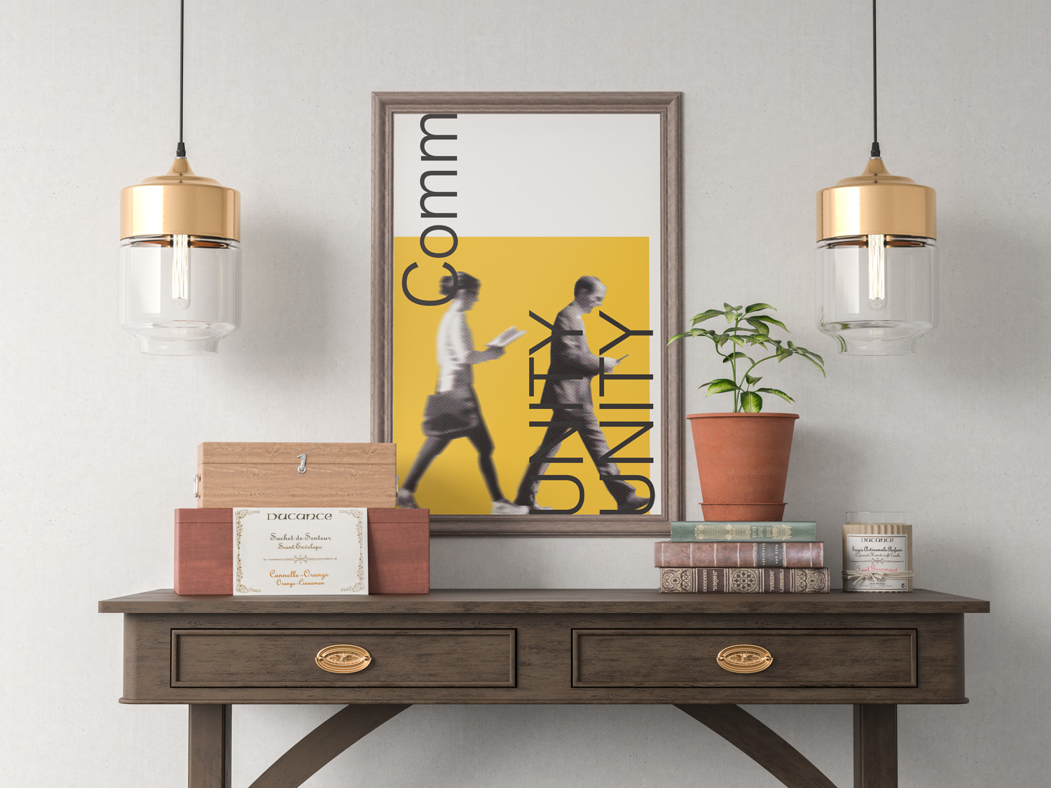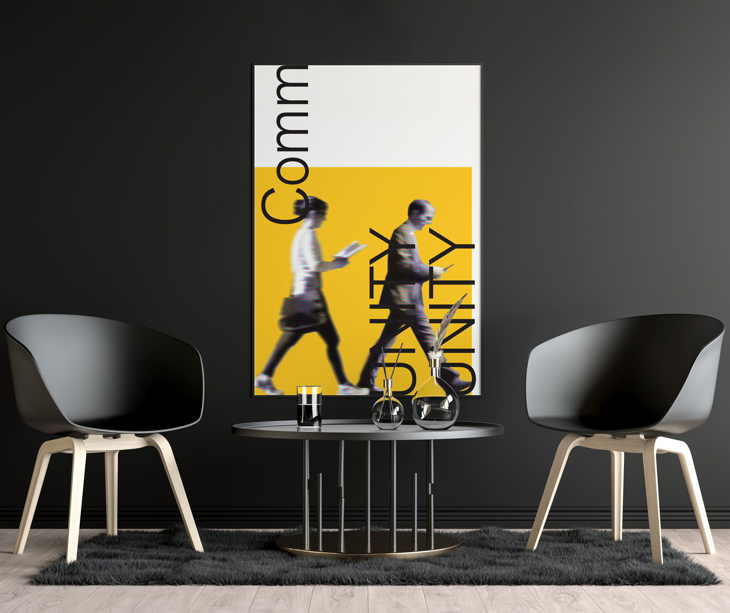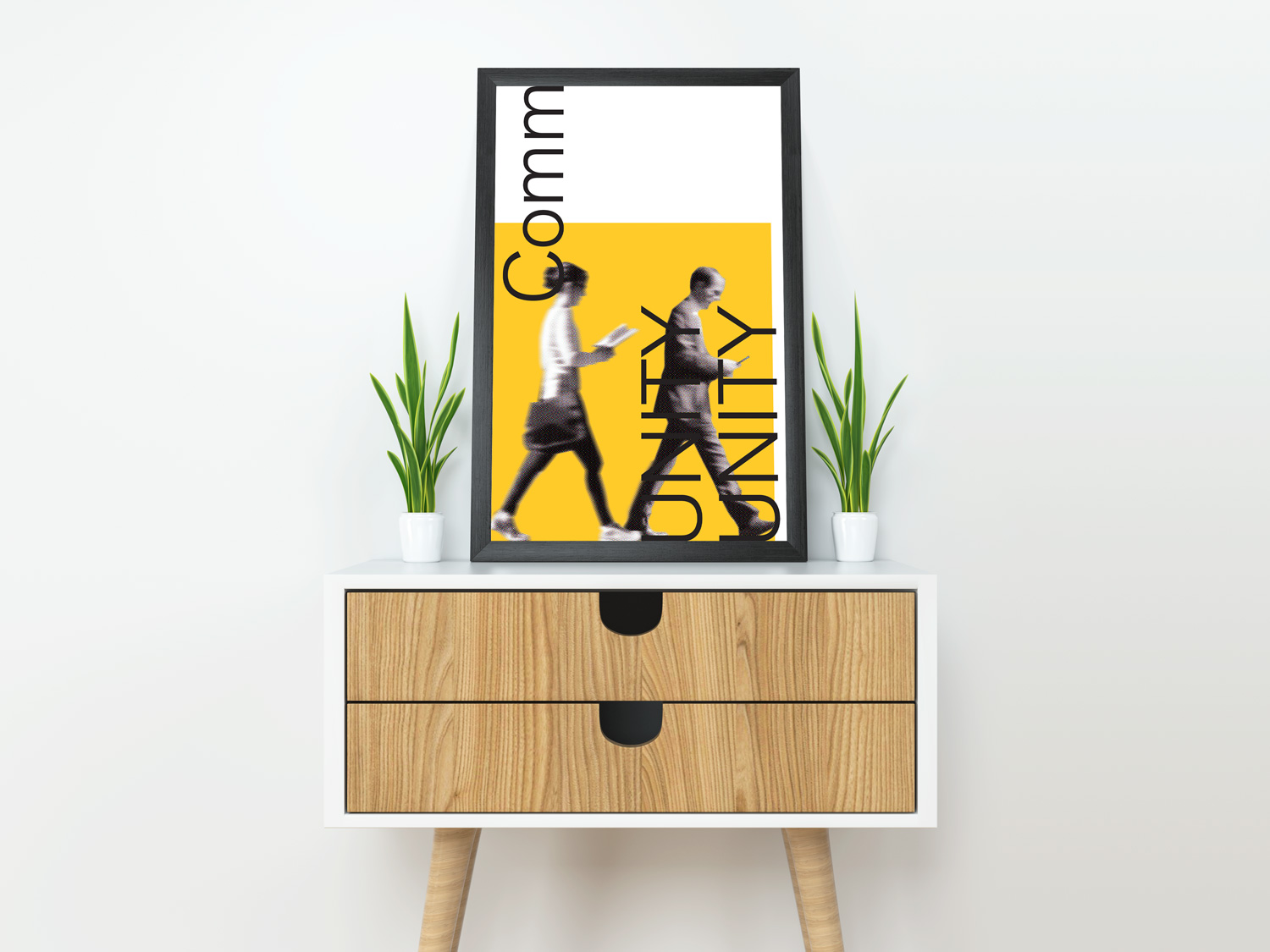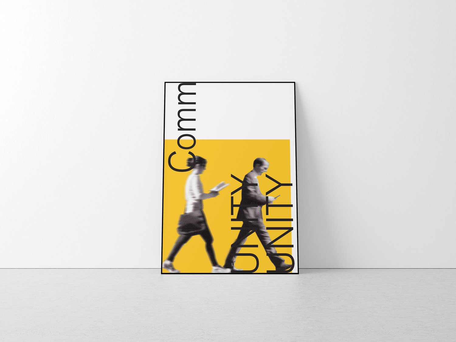 This poster design attempts to capture that landscape by juxtaposing two people inhabiting the same space but absorbed in their own worlds with the word CommUNITY bisected so as to emphasize the word UNITY—a call to restore unity.