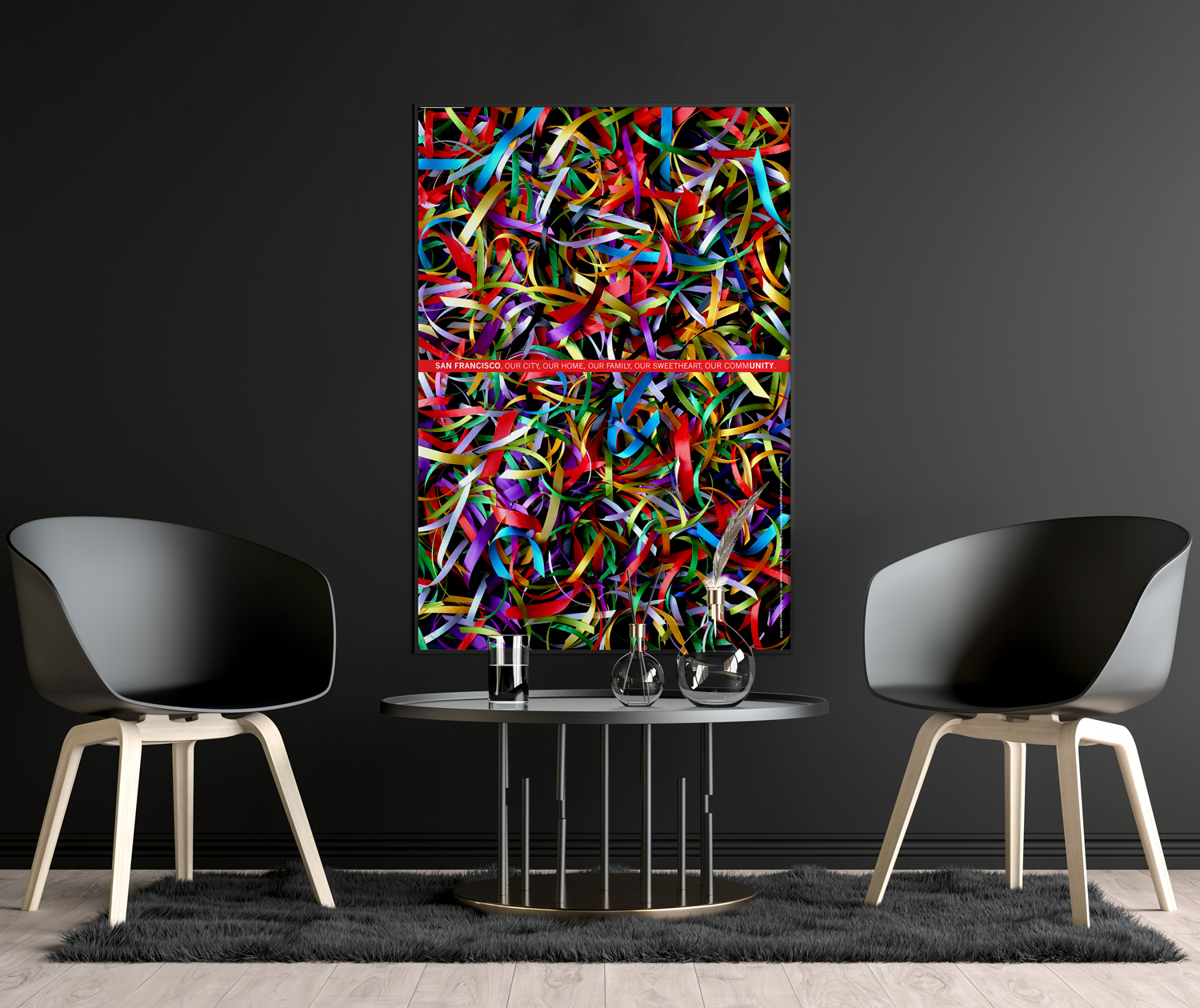 The poster expresses San Francisco's diversity, vibrancy, creativity and its unique ability to embrace change.